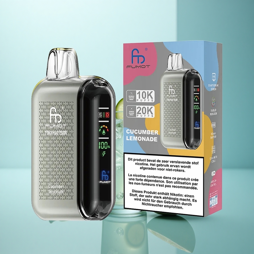 Fumot Tornado 20000 Puffs לימונדת מלפפון עם סוללה נטענת ושליטה בזרימת אוויר