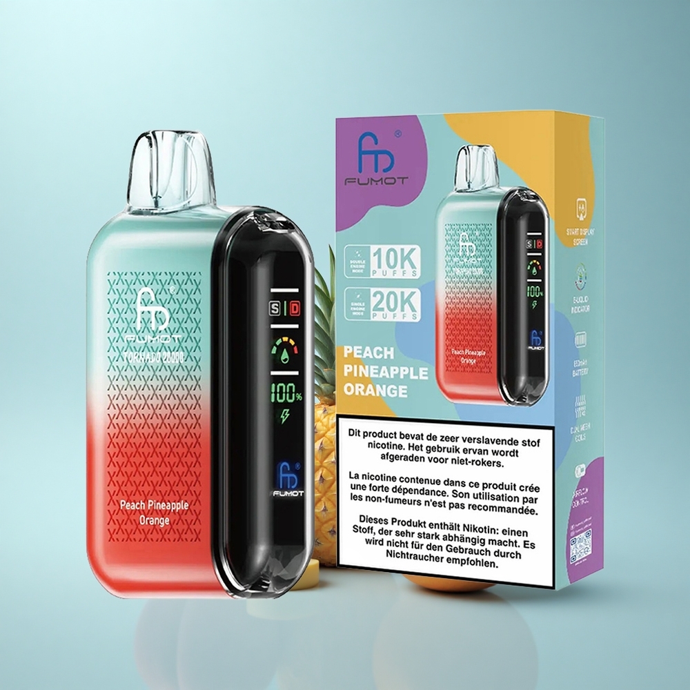 Fumot Tornado 20000 Puffs אפרסק אננס תפוז סוללה נטענת 850mAh סליל משולש