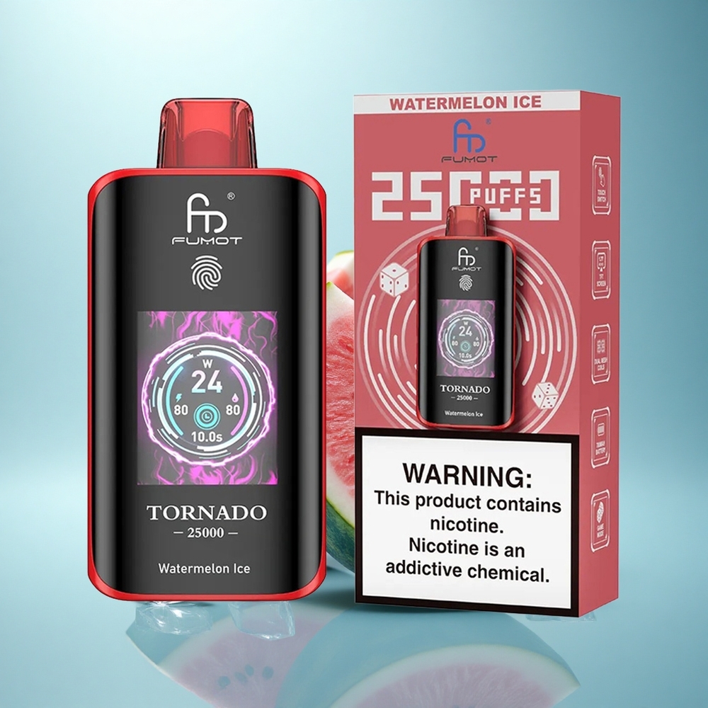 Fumot Tornado 25000 Puffs אבטיח קרח עם סוללה נטענת 700mAh ומסך HD