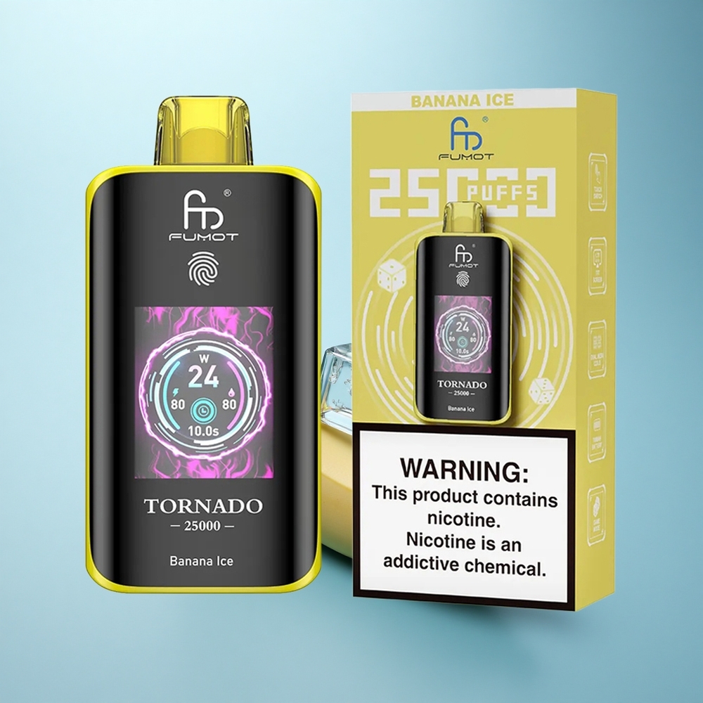 Fumot Tornado 25000 Puffs בננה קרח עם סוללה נטענת 700mAh ומסך HD